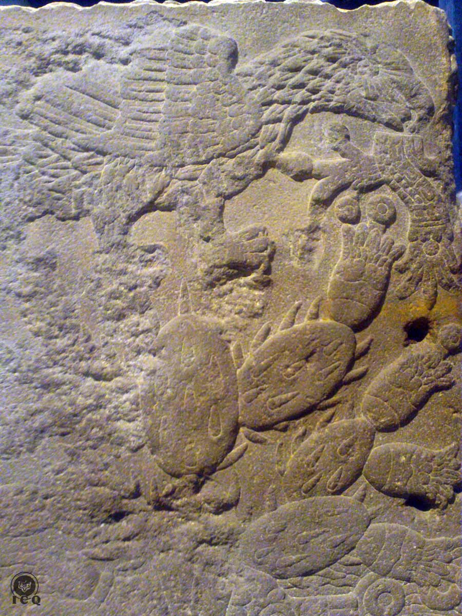 The Foundation of Mexico. Detail from the Stone of the Temple [Teocalli] (Museum of History and Anthropology, Mexico)