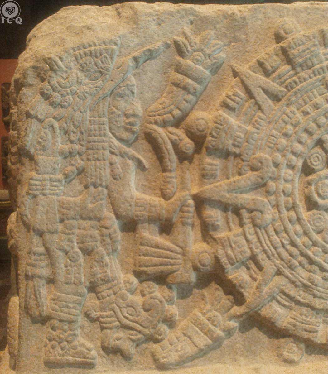 "The Left-Handed Hummingbird" [Huitzilopochtli]. Detail from the Stone of the Temple [Teocalli] (Museum of History and Anthropology, Mexico