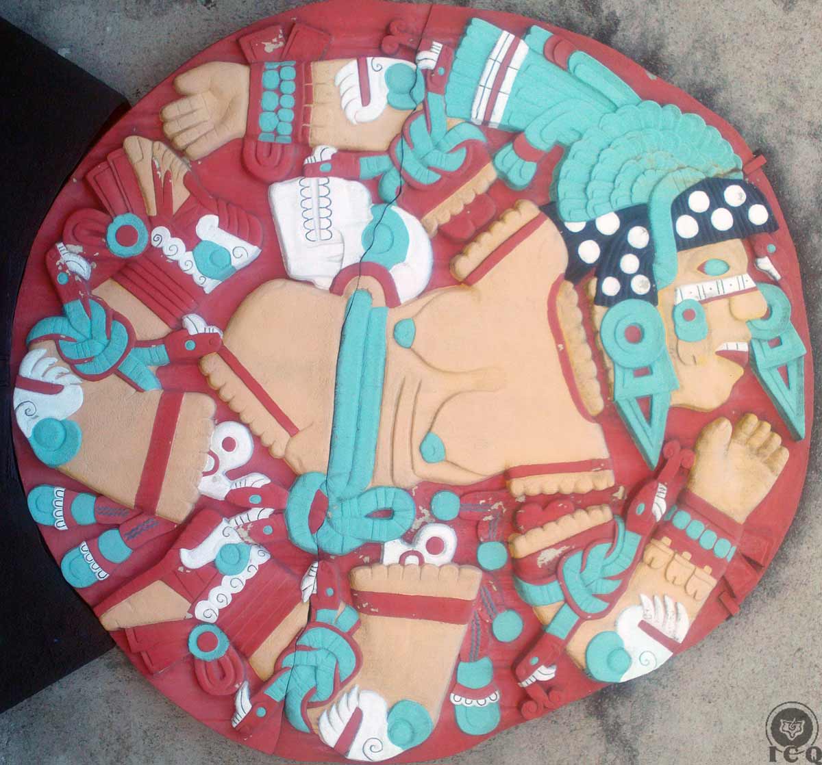 The Left-Handed Hummingbird [Huitzilopochtli] decapitates his sister and tosses her down the hillside of the Mountain of the Serpents. The stone clearly shows this particular aspect of the myth, dismembered, decapitated and bleeding. This monolith is representation of the internal work that must be realized within the internal universe of each human being: the elimination of all psychological aggregates.